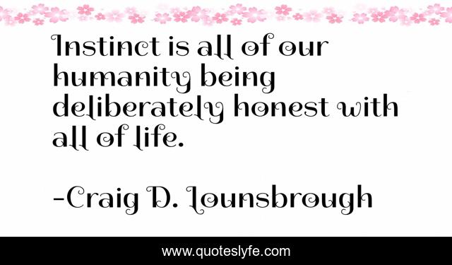 This page presents the quote "Instinct is all of our humanity being deliberately honest with all of life.". Author of this quote is Craig D. Lounsbrough. This quote is about living, life, honesty, conclusions, decision, deliberate, conclusion, honest, acumen,.
