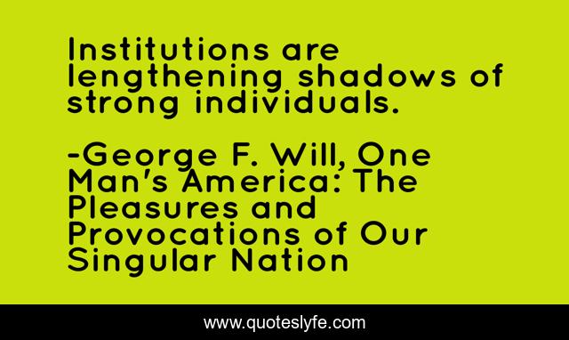 This page presents the quote "Institutions are lengthening shadows of strong individuals.". Author of this quote is George F. Will, One Man's America: The Pleasures and Provocations of Our Singular Nation. This quote is about policy, culture, personality,.