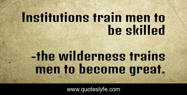 "the wilderness trains men to become great. Quotes." Quoteslyfe.com, 2025. Sat. 06 Dec. 2025. <https://www.quoteslyfe.com/quote/Institutions-train-men-to-be-skilled-190033>.