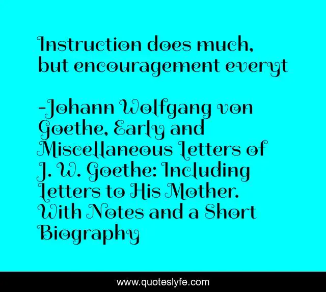 "Johann Wolfgang von Goethe, Early and Miscellaneous Letters of J. W. Goethe: Including Letters to His Mother. With Notes and a Short Biography Quotes." Quoteslyfe.com, 2025. Fri. 05 Dec. 2025. <https://www.quoteslyfe.com/quote/Instruction-does-much-but-encouragement-everyt-33329>.