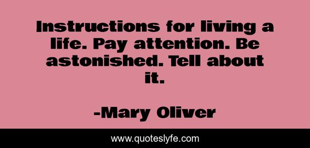 This page presents the quote "Instructions for living a life. Pay attention. Be astonished. Tell about it.". Author of this quote is Mary Oliver. .