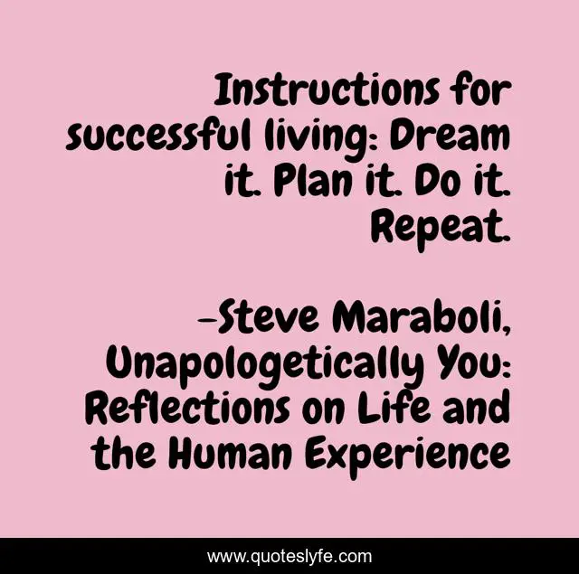 "Steve Maraboli, Unapologetically You: Reflections on Life and the Human Experience Quotes." Quoteslyfe.com, 2025. Sat. 06 Dec. 2025. <https://www.quoteslyfe.com/quote/Instructions-for-successful-living-Dream-it-Plan-131450>.