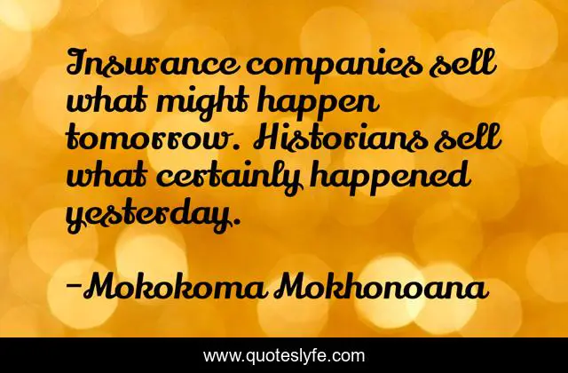 "Mokokoma Mokhonoana Quotes." Quoteslyfe.com, 2025. Tue. 09 Dec. 2025. <https://www.quoteslyfe.com/quote/Insurance-companies-sell-what-might-happen-tomorrow-258177>.