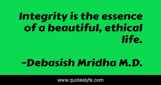 This page presents the quote "Integrity is the essence of a beautiful, ethical life.". Author of this quote is Debasish Mridha M.D.. This quote is about beautiful, ethical, life, universe, philosophy, debasish-mridha, quotes, inspirational, enthusiasm,.