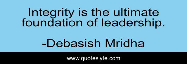 This page presents the quote "Integrity is the ultimate foundation of leadership.". Author of this quote is Debasish Mridha. This quote is about philosophy, debasish-mridha, quotes, leadership, inspirational, enthusiasm, integrity, debasish-mridha-m-d,.