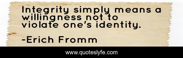 This page presents the quote "Integrity simply means a willingness not to violate one's identity.". Author of this quote is Erich Fromm. .