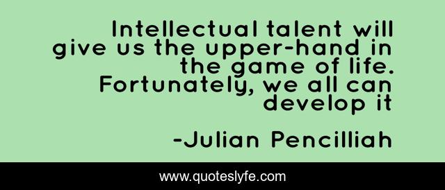 This page presents the quote "Intellectual talent will give us the upper-hand in the game of life. Fortunately, we all can develop it". Author of this quote is Julian Pencilliah. This quote is about self-motivation, the-jetstream-of-success, self-improvement, self-help,.