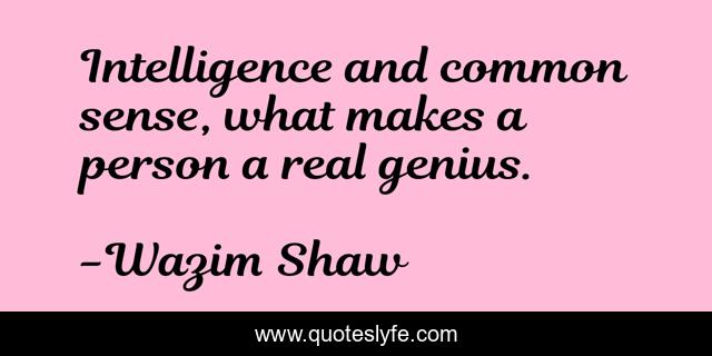 "Wazim Shaw Quotes." Quoteslyfe.com, 2025. Fri. 05 Dec. 2025. <https://www.quoteslyfe.com/quote/Intelligence-and-common-sense-what-makes-a-230899>.
