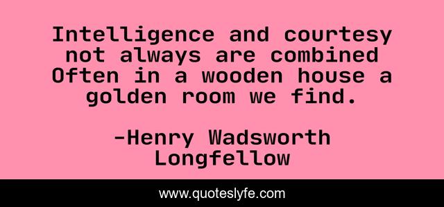 This page presents the quote "Intelligence and courtesy not always are combined Often in a wooden house a golden room we find.". Author of this quote is Henry Wadsworth Longfellow. This quote is about house, courtesy, find,.