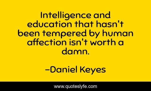 This page presents the quote "Intelligence and education that hasn't been tempered by human affection isn't worth a damn.". Author of this quote is Daniel Keyes. This quote is about intelligence, flowers-for-algernon, education, affection,.