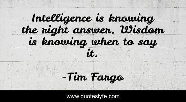 "Tim Fargo Quotes." Quoteslyfe.com, 2025. Sat. 06 Dec. 2025. <https://www.quoteslyfe.com/quote/Intelligence-is-knowing-the-right-answer-Wisdom-222321>.