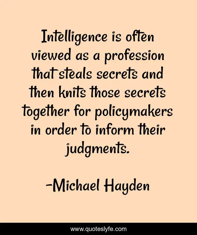 "Michael Hayden Quotes." Quoteslyfe.com, 2025. Mon. 08 Dec. 2025. <https://www.quoteslyfe.com/quote/Intelligence-is-often-viewed-as-a-profession-298522>.