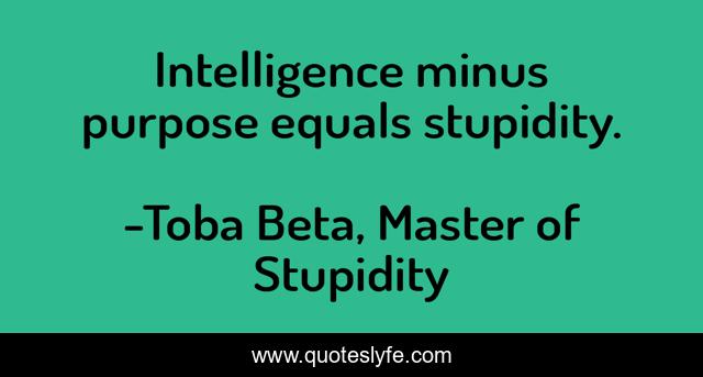 This page presents the quote "Intelligence minus purpose equals stupidity.". Author of this quote is Toba Beta, Master of Stupidity. This quote is about intelligence, stupidity, purpose,.