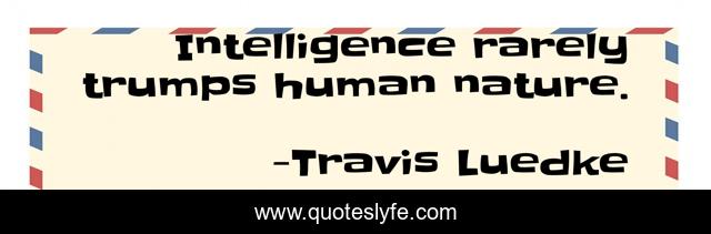 "Travis Luedke Quotes." Quoteslyfe.com, 2025. Mon. 08 Dec. 2025. <https://www.quoteslyfe.com/quote/Intelligence-rarely-trumps-human-nature-103866>.