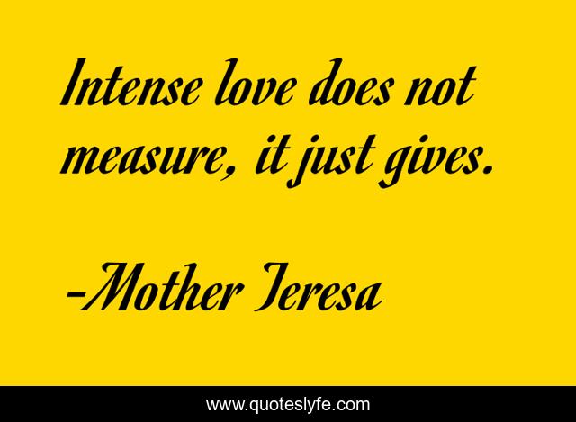 "Mother Teresa Quotes." Quoteslyfe.com, 2025. Sat. 06 Dec. 2025. <https://www.quoteslyfe.com/quote/Intense-love-does-not-measure-it-just-286878>.