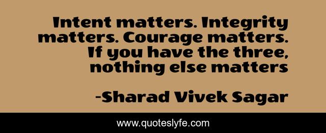 "Sharad Vivek Sagar Quotes." Quoteslyfe.com, 2025. Fri. 05 Dec. 2025. <https://www.quoteslyfe.com/quote/Intent-matters-Integrity-matters-Courage-matters-If-91724>.