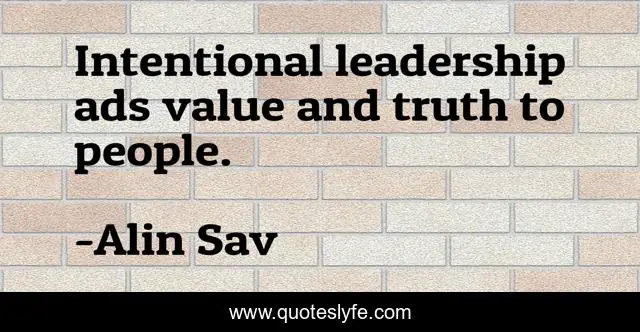 This page presents the quote "Intentional leadership ads value and truth to people.". Author of this quote is Alin Sav. This quote is about spiritual, leadership,.