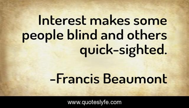 This page presents the quote "Interest makes some people blind and others quick-sighted.". Author of this quote is Francis Beaumont. This quote is about ironic, conclusion, observation, insightful,.