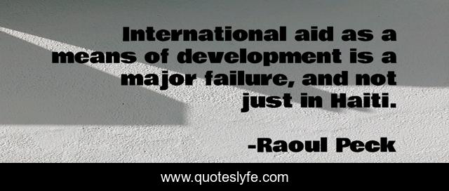 This page presents the quote "International aid as a means of development is a major failure, and not just in Haiti.". Author of this quote is Raoul Peck. This quote is about development, aid, just,.