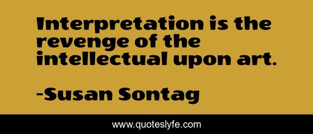 "Susan Sontag Quotes." Quoteslyfe.com, 2025. Sun. 07 Dec. 2025. <https://www.quoteslyfe.com/quote/Interpretation-is-the-revenge-of-the-intellectual-65325>.