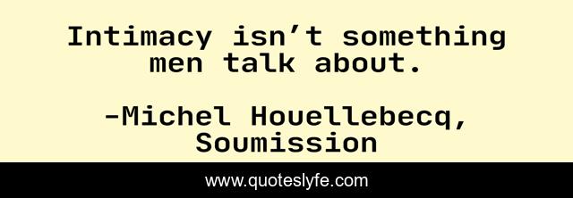 "Michel Houellebecq, Soumission Quotes." Quoteslyfe.com, 2025. Fri. 05 Dec. 2025. <https://www.quoteslyfe.com/quote/Intimacy-isn-t-something-men-talk-about-252751>.