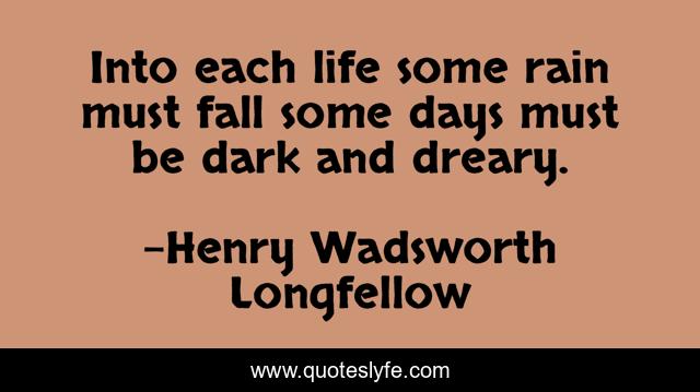 This page presents the quote "Into each life some rain must fall some days must be dark and dreary.". Author of this quote is Henry Wadsworth Longfellow. .