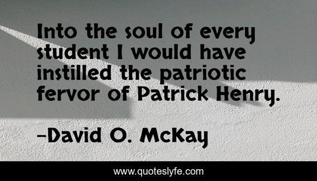 This page presents the quote "Into the soul of every student I would have instilled the patriotic fervor of Patrick Henry.". Author of this quote is David O. McKay. This quote is about soul, student, instilled,.
