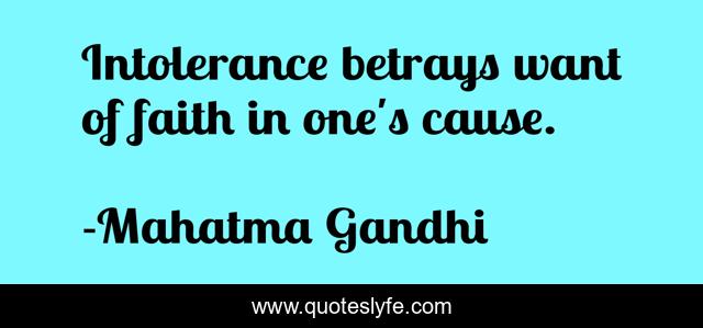 This page presents the quote "Intolerance betrays want of faith in one's cause.". Author of this quote is Mahatma Gandhi. This quote is about intolerance, cause,.