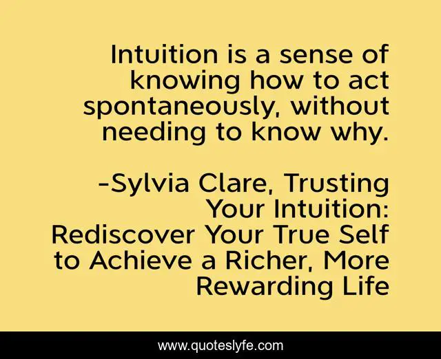 "Sylvia Clare, Trusting Your Intuition: Rediscover Your True Self to Achieve a Richer, More Rewarding Life Quotes." Quoteslyfe.com, 2025. Fri. 05 Dec. 2025. <https://www.quoteslyfe.com/quote/Intuition-is-a-sense-of-knowing-how-77564>.