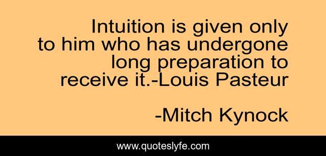 This page presents the quote "Intuition is given only to him who has undergone long preparation to receive it.-Louis Pasteur". Author of this quote is Mitch Kynock. .