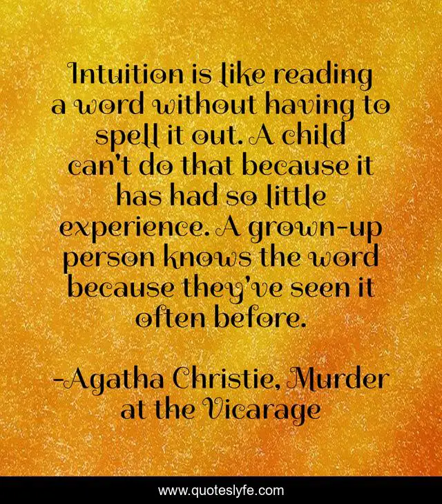"Agatha Christie, Murder at the Vicarage Quotes." Quoteslyfe.com, 2025. Sat. 13 Dec. 2025. <https://www.quoteslyfe.com/quote/Intuition-is-like-reading-a-word-without-232092>.