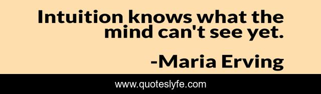 This page presents the quote "Intuition knows what the mind can't see yet.". Author of this quote is Maria Erving. This quote is about intuitive-wisdom, intuition,.