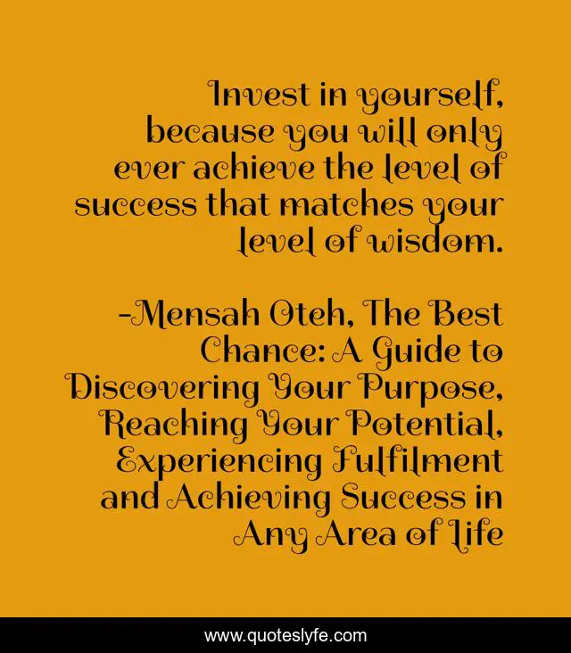 "Mensah Oteh, The Best Chance: A Guide to Discovering Your Purpose, Reaching Your Potential, Experiencing Fulfilment and Achieving Success in Any Area of Life Quotes." Quoteslyfe.com, 2025. Fri. 05 Dec. 2025. <https://www.quoteslyfe.com/quote/Invest-in-yourself-because-you-will-only-48960>.
