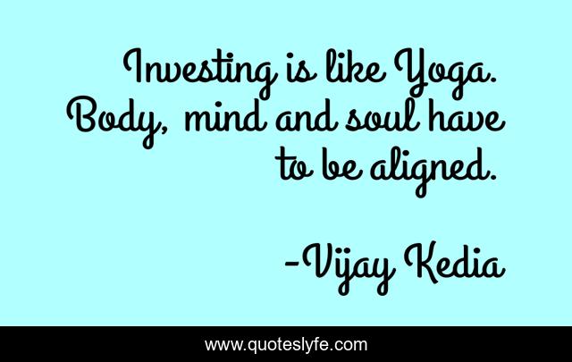 This page presents the quote "Investing is like Yoga. Body, mind and soul have to be aligned.". Author of this quote is Vijay Kedia. This quote is about business-success, enthusiasm, business, inspirational, business-leaders,.