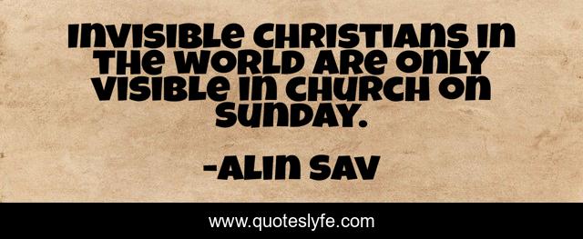 This page presents the quote "Invisible Christians in the world are only visible in church on Sunday.". Author of this quote is Alin Sav. .