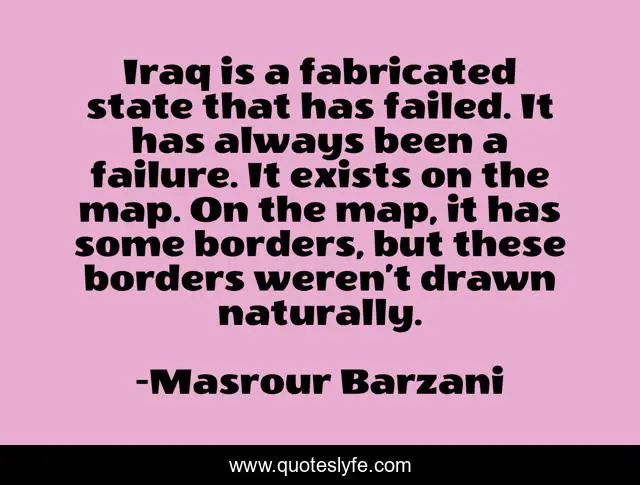 This page presents the quote "Iraq is a fabricated state that has failed. It has always been a failure. It exists on the map. On the map, it has some borders, but these borders weren’t drawn naturally.". Author of this quote is Masrour Barzani. This quote is about politics, political,.