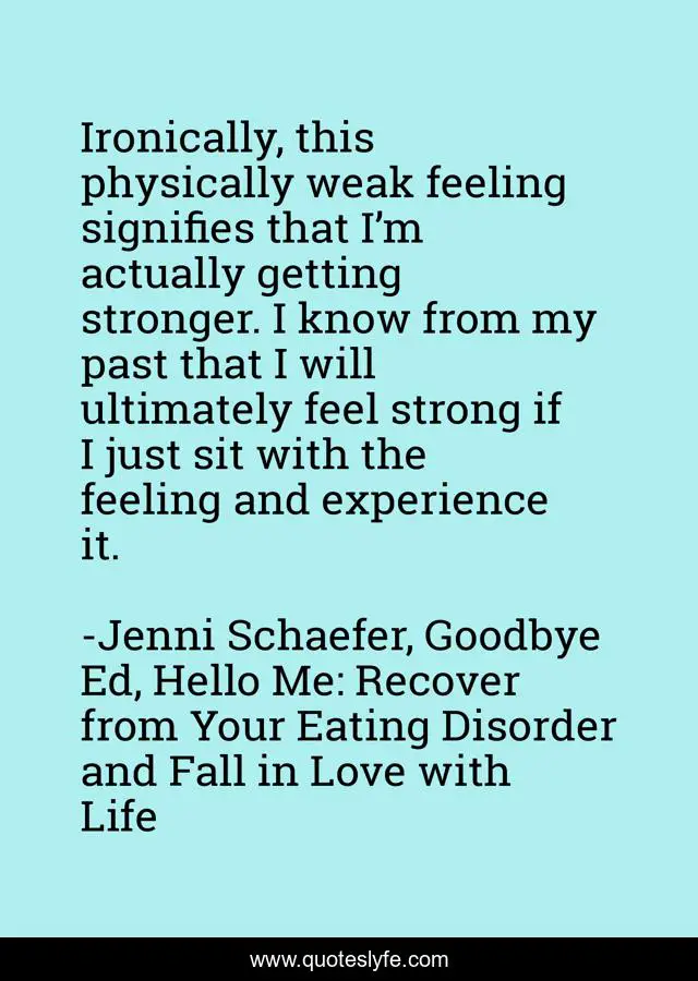 "Jenni Schaefer, Goodbye Ed, Hello Me: Recover from Your Eating Disorder and Fall in Love with Life Quotes." Quoteslyfe.com, 2025. Fri. 05 Dec. 2025. <https://www.quoteslyfe.com/quote/Ironically-this-physically-weak-feeling-signifies-that-162210>.