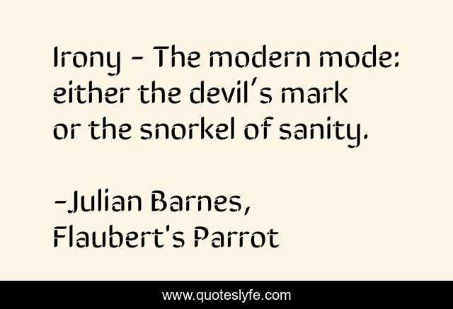 "Julian Barnes, Flaubert's Parrot Quotes." Quoteslyfe.com, 2025. Mon. 08 Dec. 2025. <https://www.quoteslyfe.com/quote/Irony-The-modern-mode-either-the-devil-215803>.