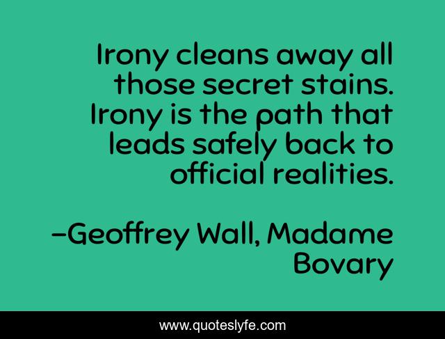 "Geoffrey Wall, Madame Bovary Quotes." Quoteslyfe.com, 2025. Tue. 09 Dec. 2025. <https://www.quoteslyfe.com/quote/Irony-cleans-away-all-those-secret-stains-215814>.