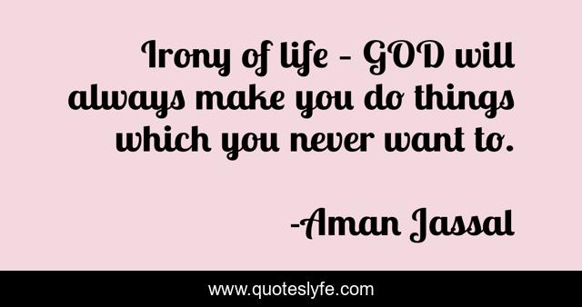 "Aman Jassal Quotes." Quoteslyfe.com, 2025. Sat. 06 Dec. 2025. <https://www.quoteslyfe.com/quote/Irony-of-life-GOD-will-always-make-125462>.
