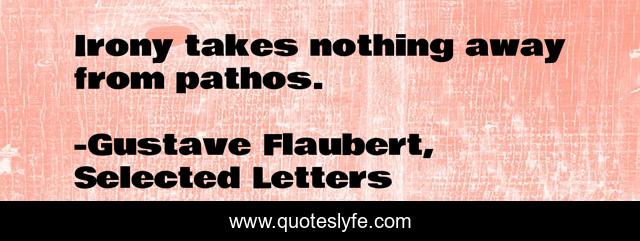 This page presents the quote "Irony takes nothing away from pathos.". Author of this quote is Gustave Flaubert, Selected Letters. This quote is about irony, pathos,.