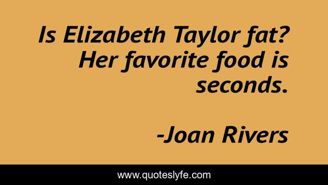 This page presents the quote "Is Elizabeth Taylor fat? Her favorite food is seconds.". Author of this quote is Joan Rivers. This quote is about favorite, fat, her,.