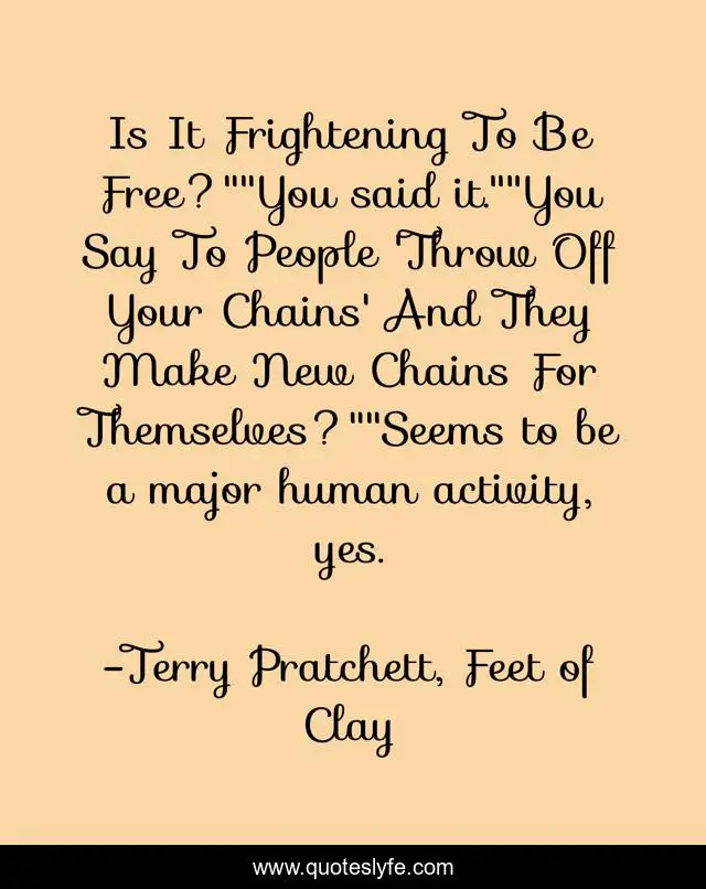 "Terry Pratchett, Feet of Clay Quotes." Quoteslyfe.com, 2025. Sat. 06 Dec. 2025. <https://www.quoteslyfe.com/quote/Is-It-Frightening-To-Be-Free-You-175290>.