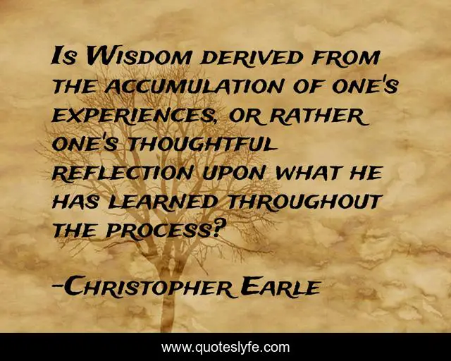 "Christopher Earle Quotes." Quoteslyfe.com, 2025. Sat. 06 Dec. 2025. <https://www.quoteslyfe.com/quote/Is-Wisdom-derived-from-the-accumulation-of-228034>.