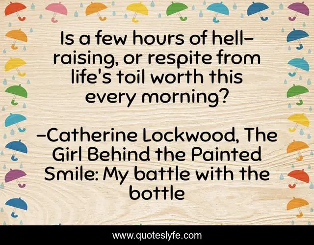 "Catherine Lockwood, The Girl Behind the Painted Smile: My battle with the bottle Quotes." Quoteslyfe.com, 2025. Fri. 05 Dec. 2025. <https://www.quoteslyfe.com/quote/Is-a-few-hours-of-hell-raising-210268>.
