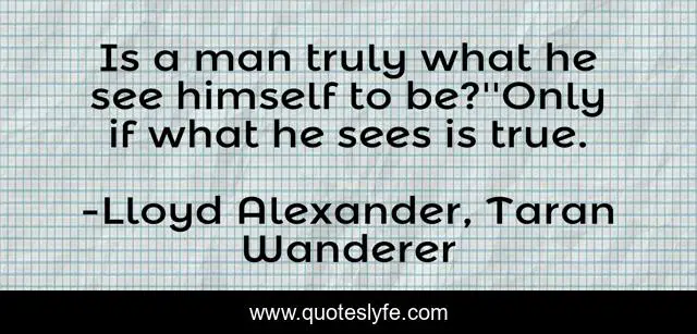 This page presents the quote "Is a man truly what he see himself to be?''Only if what he sees is true.". Author of this quote is Lloyd Alexander, Taran Wanderer. This quote is about awareness, preception, truth, man,.
