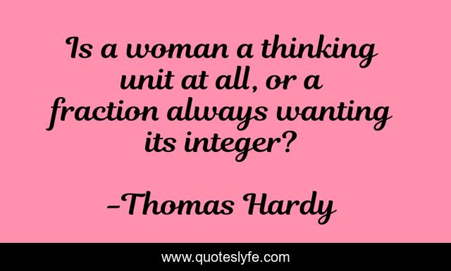 This page presents the quote "Is a woman a thinking unit at all, or a fraction always wanting its integer?". Author of this quote is Thomas Hardy. .