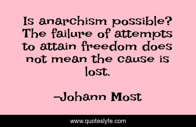 "Johann Most Quotes." Quoteslyfe.com, 2025. Fri. 05 Dec. 2025. <https://www.quoteslyfe.com/quote/Is-anarchism-possible-The-failure-of-attempts-286734>.