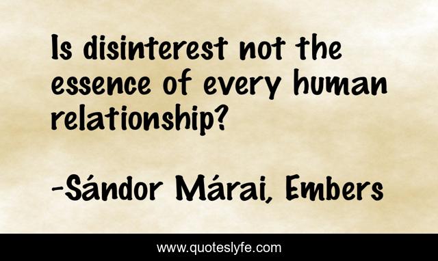 This page presents the quote "Is disinterest not the essence of every human relationship?". Author of this quote is Sándor Márai, Embers. .