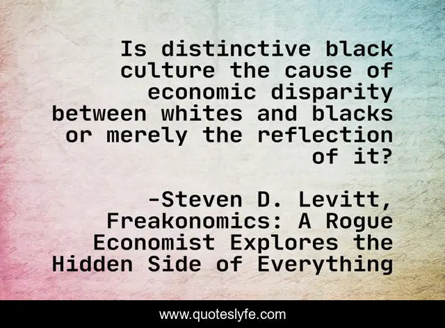 "Steven D. Levitt, Freakonomics: A Rogue Economist Explores the Hidden Side of Everything Quotes." Quoteslyfe.com, 2025. Sat. 06 Dec. 2025. <https://www.quoteslyfe.com/quote/Is-distinctive-black-culture-the-cause-of-200351>.